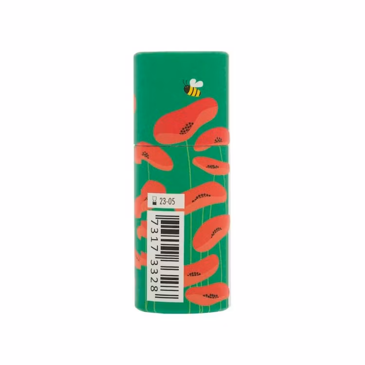 Plastförpackningen har valts bort till förmån för en högtålig och miljövänligare pappförpackning i vacker design av klarröd Vallmo, en klassisk gotländsk vy och en blomfavorit hos bina med sitt höga pollenvärde. Dessutom har storleken fördubblats jämfört med ett vanligt cerat, vilket gör det lätt att applicera där det behövs.