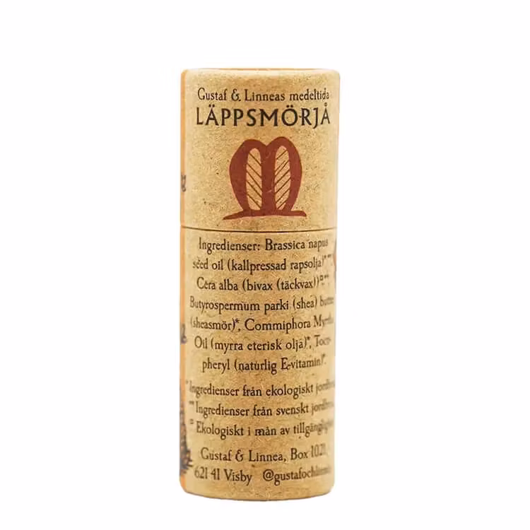 I samarbete med Medeltidsveckan har vi gjort två spännande resor i tiden. Den ena i smakens och doftens namn, den andra i medeltida konst tillsammans med den gotländska designern Knut Stahle. Resultatet är ett läppsmörjå med dåtidens näst dyraste råvara, ett tag till och med dyrare än guld, nämligen Myrra. Myrra användes inom sårläkning, i salvor av bivax och som rökelse. Doften från myrra är välgörande för sinnet och åt det myskiga hållet. Stahle har på förpackningen målat en enkel halmkupa med bin tecknade som fåglar, även en vacker vallmo får pryda framsidan. En det var en vanlig gotländsk syn på Medeltiden. När du plockar fram ditt läppsmörjå och sätter det silkeslena stiftet mot läpparna, då kan du ta ett djupt andetag och drömma dig tillbaka till Visby och Medeltidsveckan.