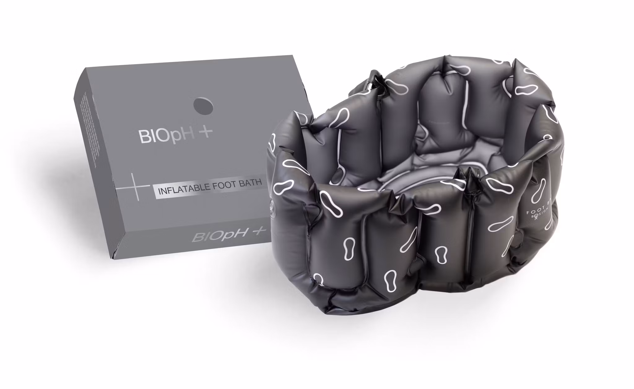 BIOpH Inflatable Foot Bath är ett uppblåsbart fotbad som gör din fotbehandling extra bekväm. Den mjuka konstruktionen för att du på ett enkelt sätt kan bära fotbadet fyllt med vatten utan att det skvimper över kanterna. De luftfyllda väggarna isolerar vatten och håller på så sätt värmen längre.