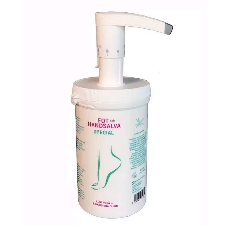 Fot och Handsalvan är framtagen för speciellt krävande hud vid exempelvis ytliga sprickor, torrhet och förhårdnader. Verkar balanserande, ger huden fukt och näring samt ger en skyddande fettbarriär.