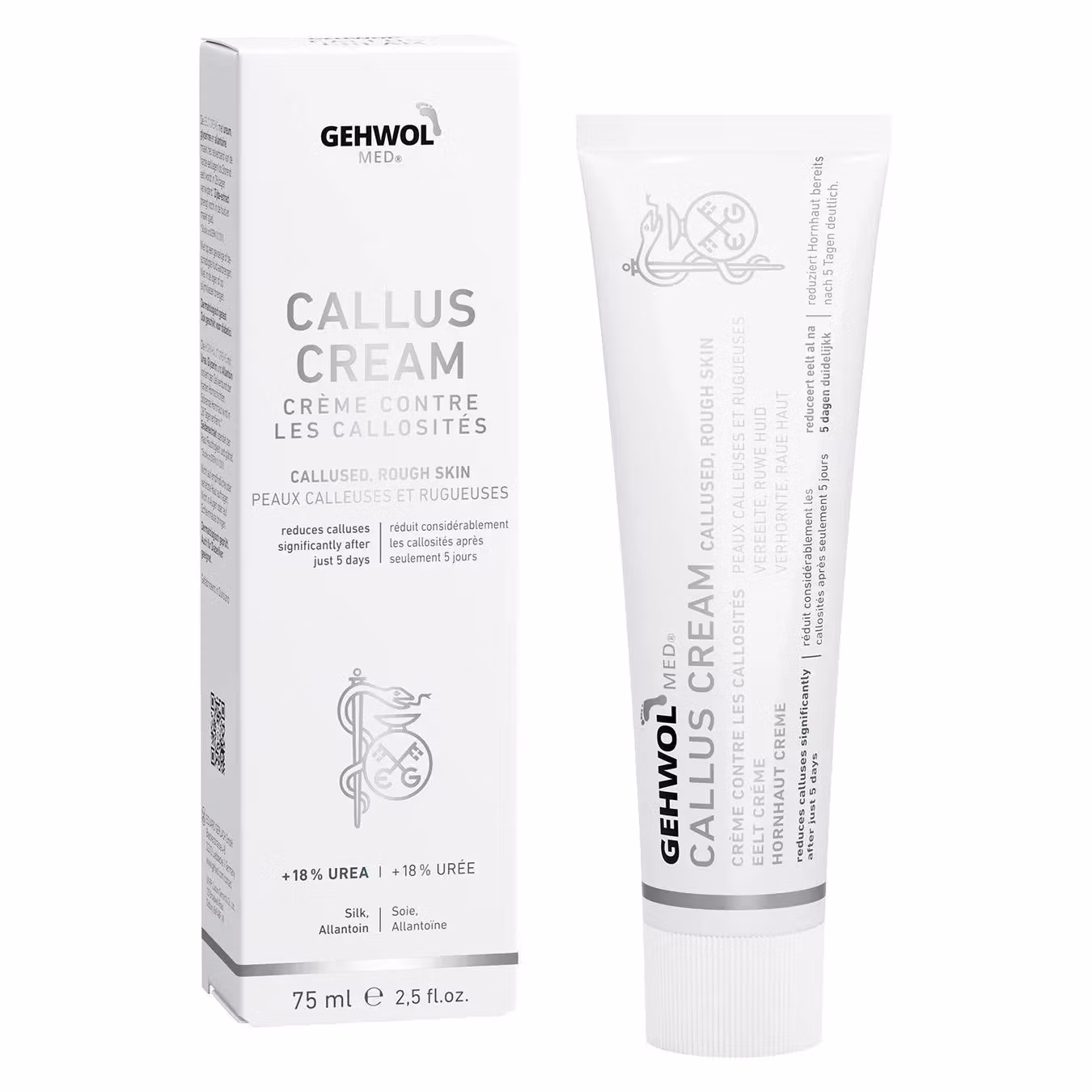 Gehwol Callus Cream 75ml är en effektiv fotkräm framtagen för att behandla kraftig förhårdnad och mycket torr hud på fötterna. Krämen är särskilt lämpad för dig som ofta får tjock hornhud på hälar, trampdynor eller andra tryckutsatta områden och vill ha ett dokumenterat resultat utan onödigt krångel.