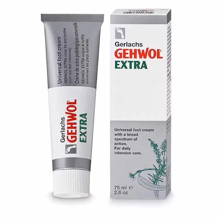 Denna fotkräm är särskilt utformad för att deodorisera och desinficera huden på fötterna, vilket effektivt motverkar fotlukt och fotsvamp. Dessutom har Gehwol Fotkräm Extra förmågan att förebygga och behandla en mängd vanliga fotåkommor, inklusive brännande känsla, hornhud, sår och blåsor. Den är också effektiv för att mjukgöra och återfukta torr, sprucken hud.
