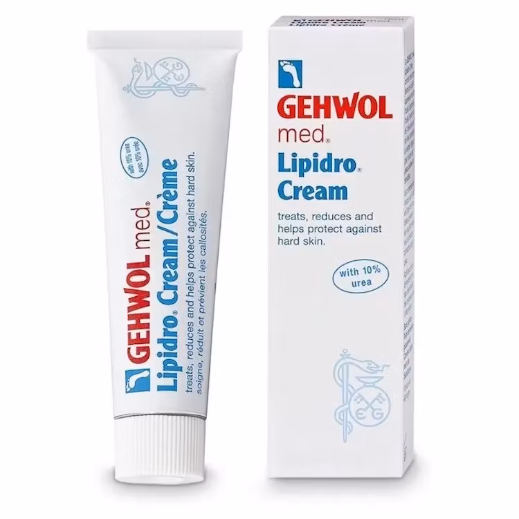Hornhud mjukas upp och överflödig nybildning reduceras. Havtornsolja och avocadoolja med en hög andel omättade fettsyror återför saknade lipider till huden och minskar på så sätt vattenförlusten genom avdunstning. Denna effekt förstärks av ett speciellt algextrakt. Allantoin, som är ett extrakt ur hästkastanjen främjar återbildandet av hudceller. Farnesol verkar antibakteriellt och deodoriserande. Daglig användning av Gehwol Lipidro creme skyddar mot fotlukt, fotsvamp och verkar inflammationshämmande.