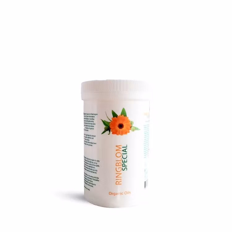 Ringblom Special är framtagen för krävande hud vid exempelvis torrhet och förhårdnader. Verkar balanserande, ger huden fett och näring, samt ger en skyddande barriär. Krämen understödjer en hälsosam och motståndskraftig hud med hjälp av ämnen som Ringblomma och Camelinaolja.