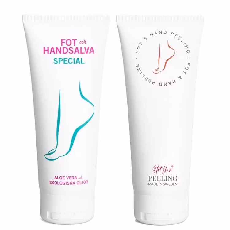 Fot och handsalva Special ihop med fot och handpeeling är en super kombination för att främja en bättre fothälsa. Vi har satt ihop ett paket som vi just nu har ett fint erbjudande på 💚 Tuberna har ett innehåll på 100ml/st