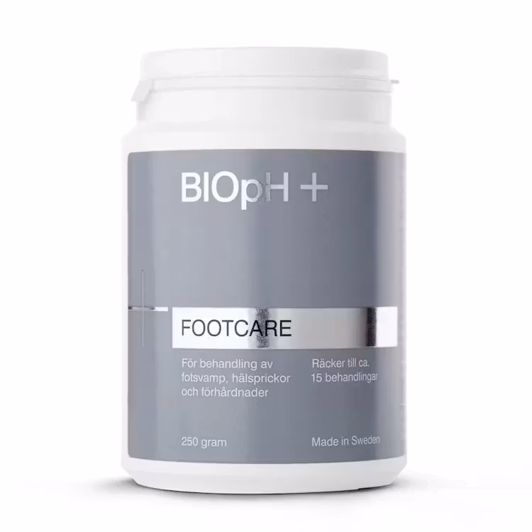 - BIOpH Footcare djuprengör, exfolierar och tar bort döda hudceller och skapar därmed en ogynnsam miljö för bakterier, virus och fotsvamp på huden.