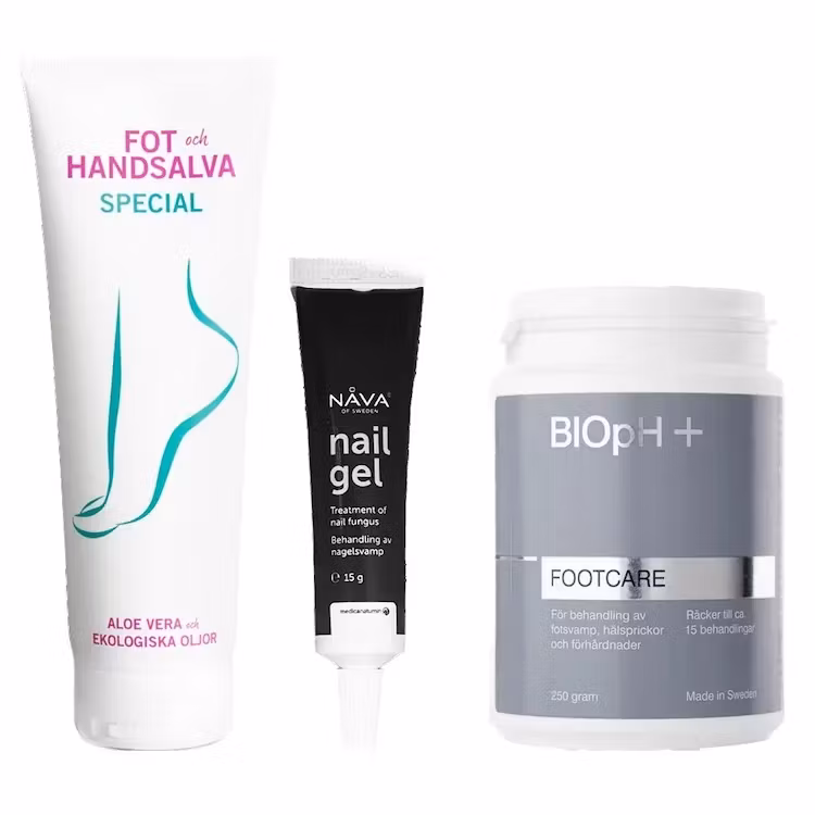 Nu kan du ta del av mitt erbjudande med en Nåva Nagelgel som är super att behandla missfärgade naglar och en Fot och & Handsalva special 250ml som är vår storsäljare för torr och narig hud. BIOpH Footcare 250g är ett fotbad som gör under med era fötter.