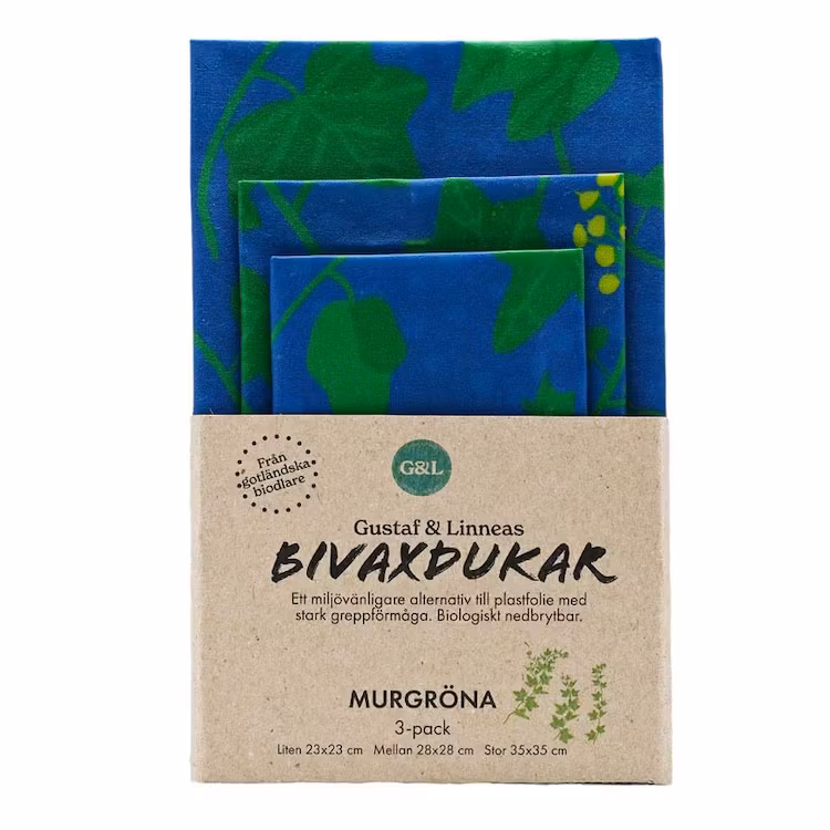 gör att du kan förvara dina matvaror på ett naturligt och plastfritt sätt. Den fyller samma funktion som plastfolie och fäster lika bra som den runt matvarorna eller porslinet. Linda duken runt osten, grönsakerna, frukten eller en tallrik mat och värm duken med händerna så formas duken runt föremålet. Bivaxets antibakteriella egenskaper håller matvarorna fräscha och fina. Skippa plasten och välj bivaxduken som är bra för både dig och miljön.